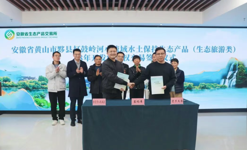3月17日下午,黟县打鼓岭河小流域8年开发经营权(生态旅游类)在安徽省生态产品交易所成功签约,交易金额为400万元。受让方为万国易景园望乡文旅科技(南京)有限责任公司,是一家专注于生态文旅开发的民营企业。这是2026年黄山市首单水生态产品交易,实现了水资源的优价使用,是“水利+”的又一次有益探索。