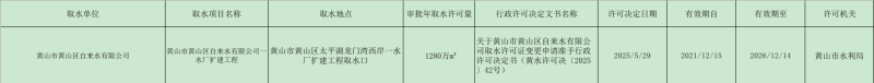 关于黄山市黄山区自来水有限公司取水许可证变更申请准予行政许可决定书