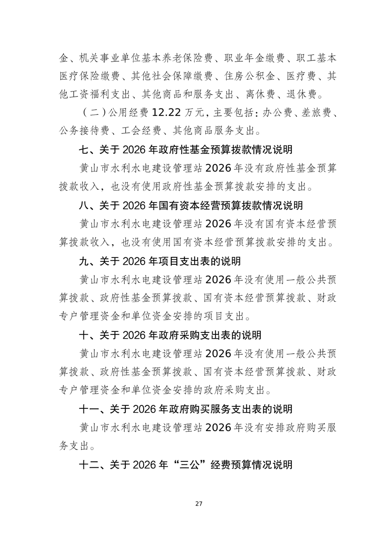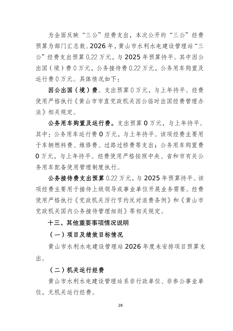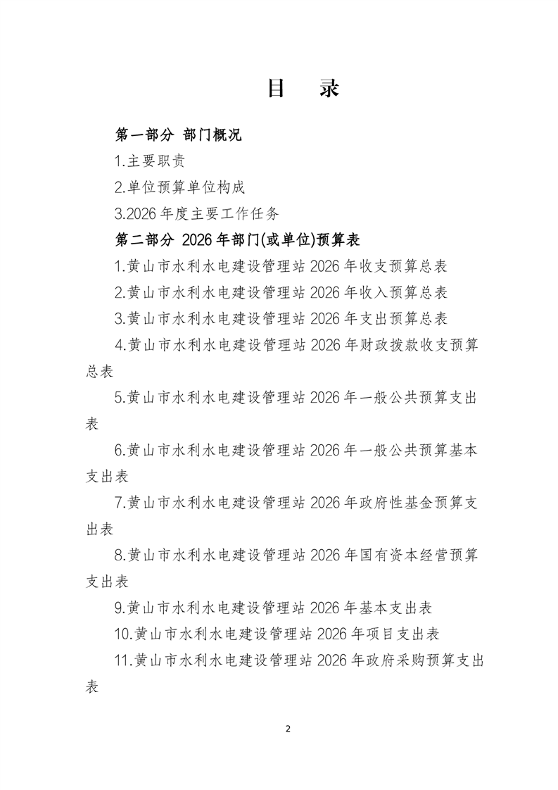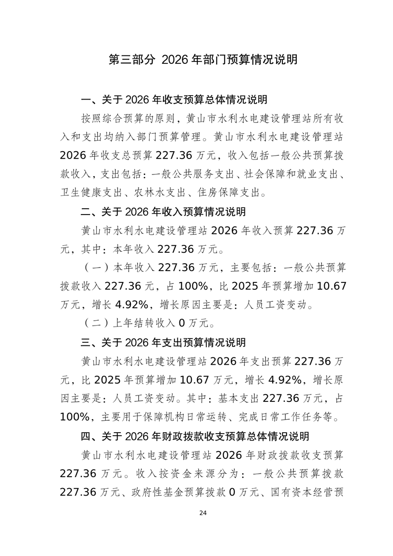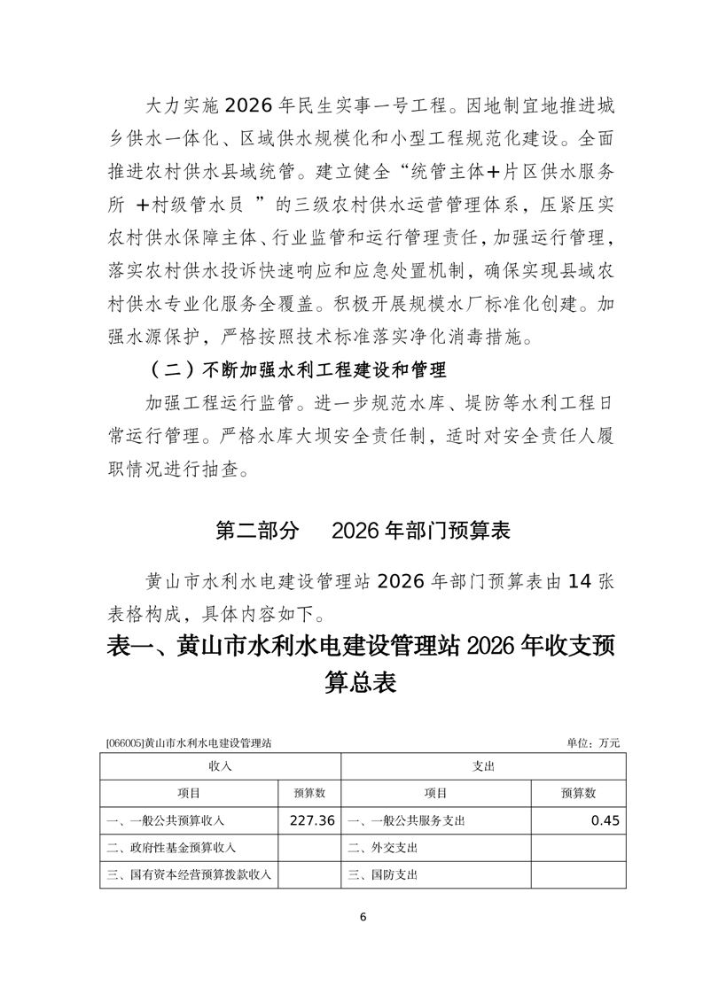 黄山市水利水电建设管理站2026年单位预算