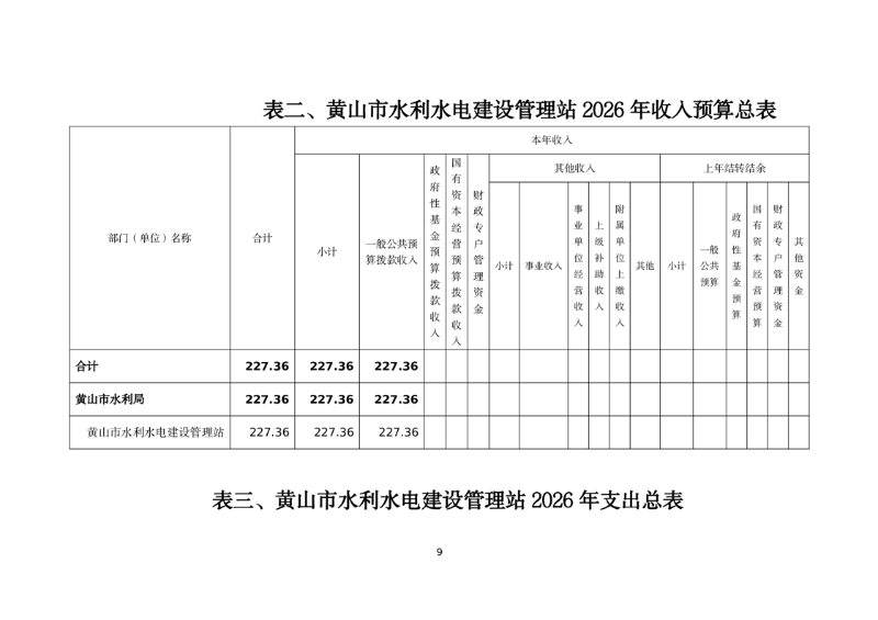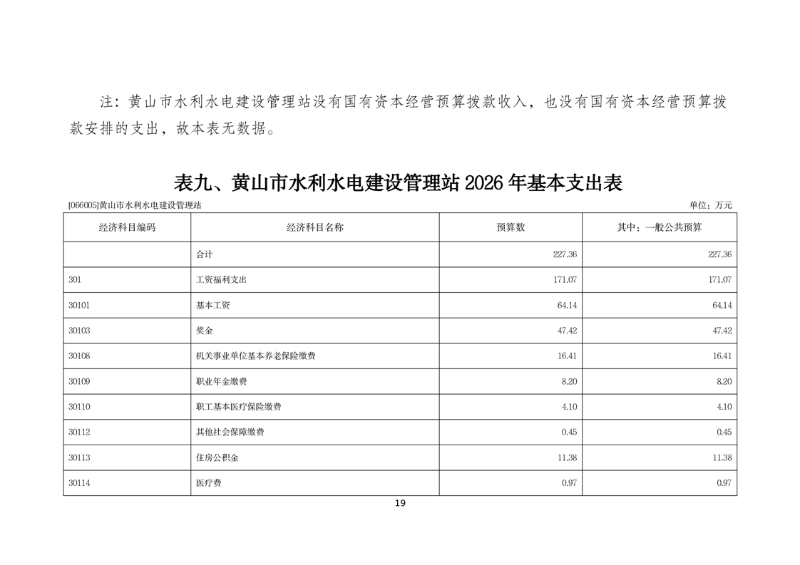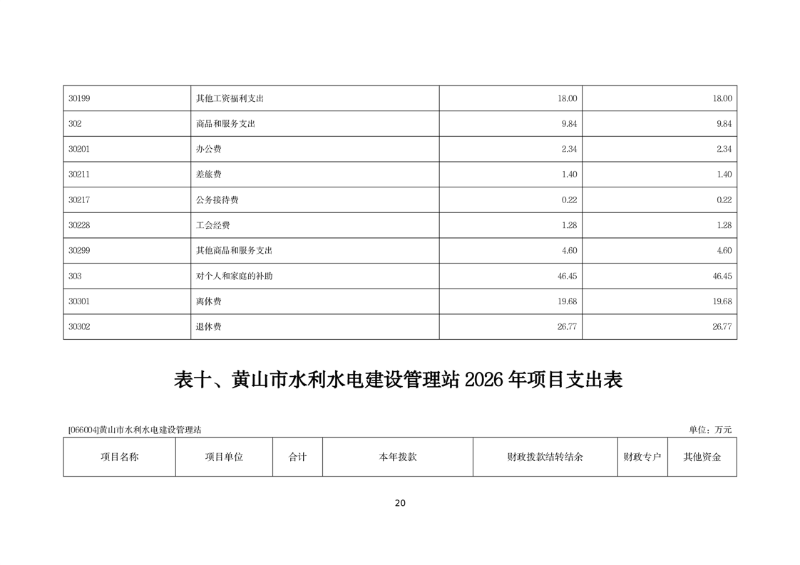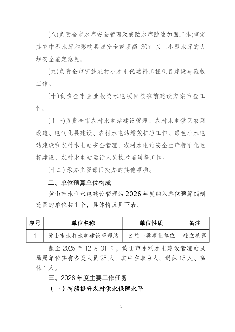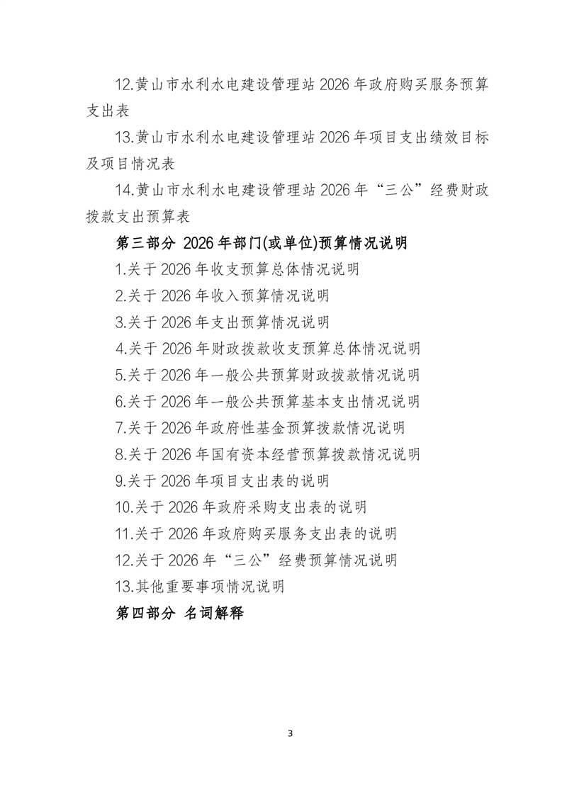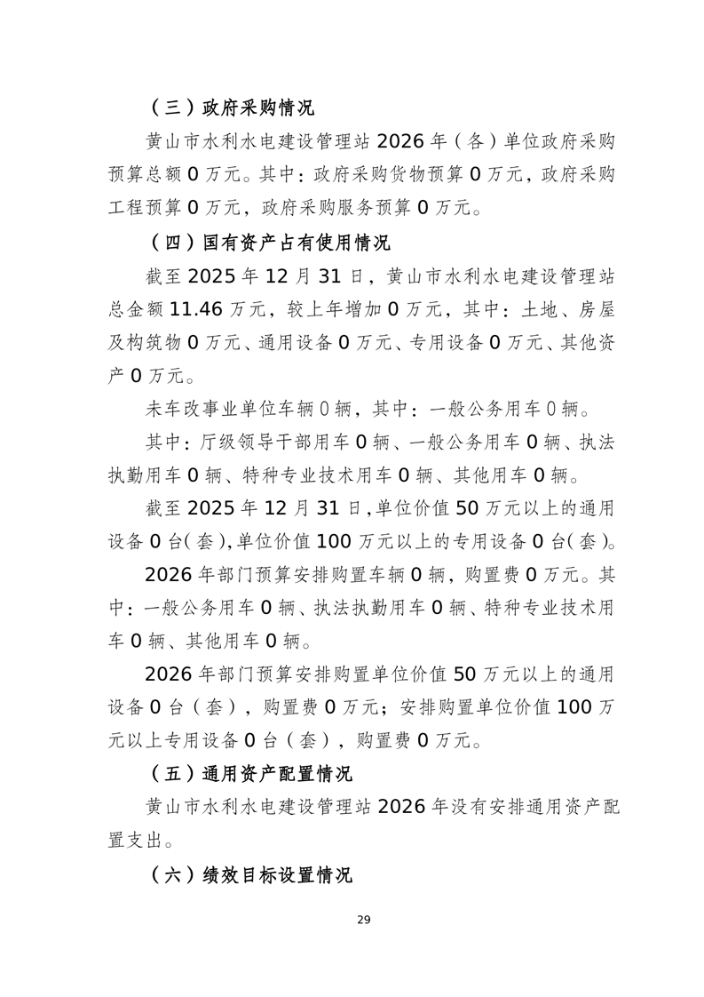 黄山市水利水电建设管理站2026年单位预算