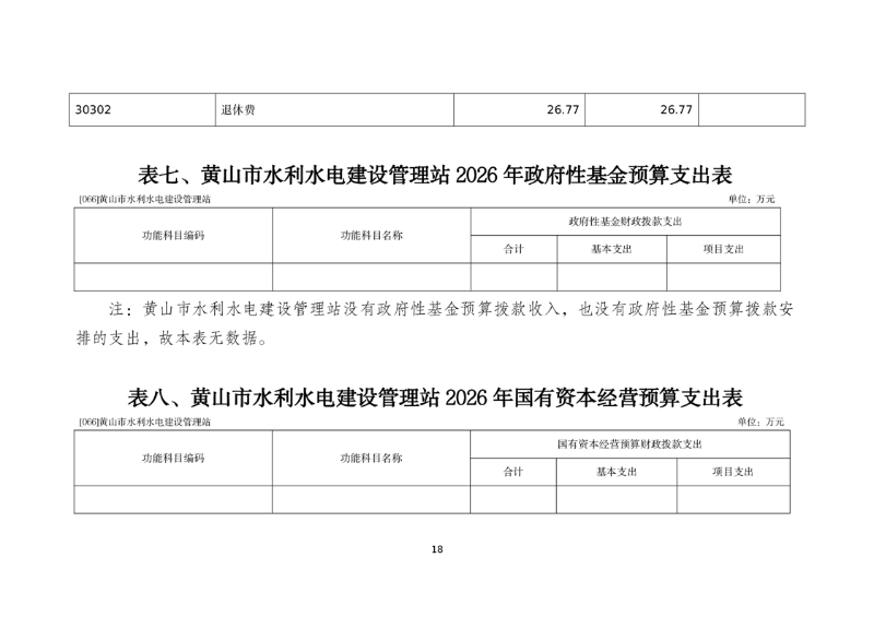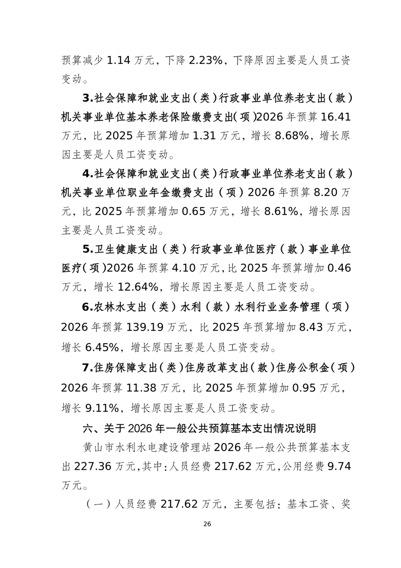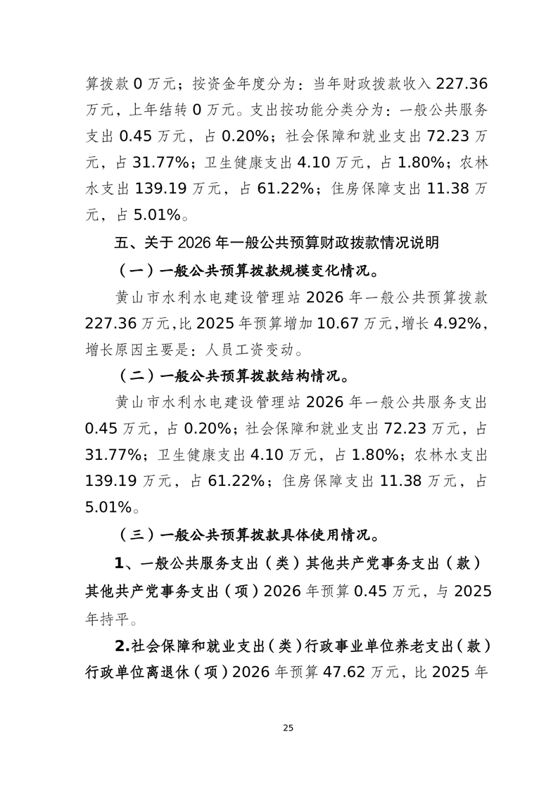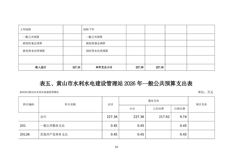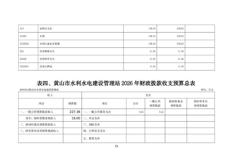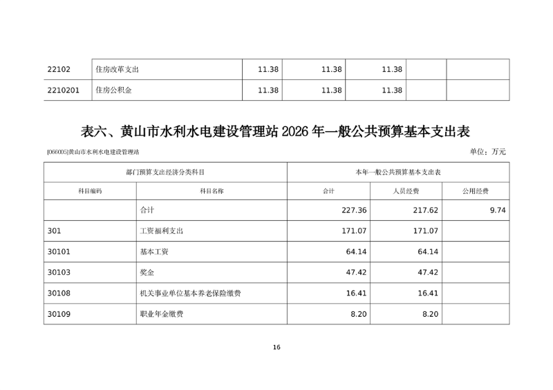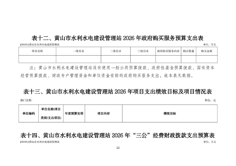 黄山市水利水电建设管理站2026年单位预算