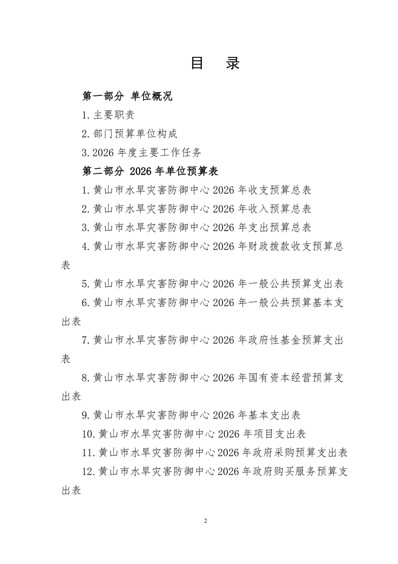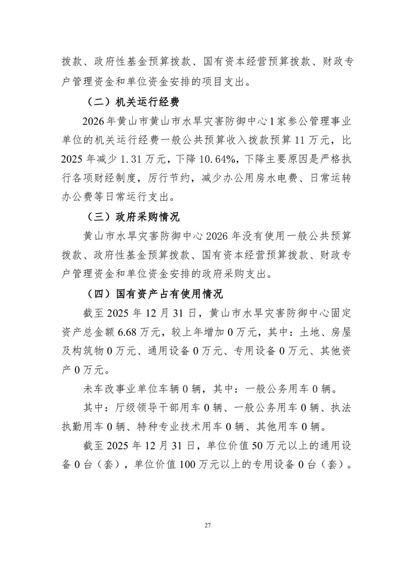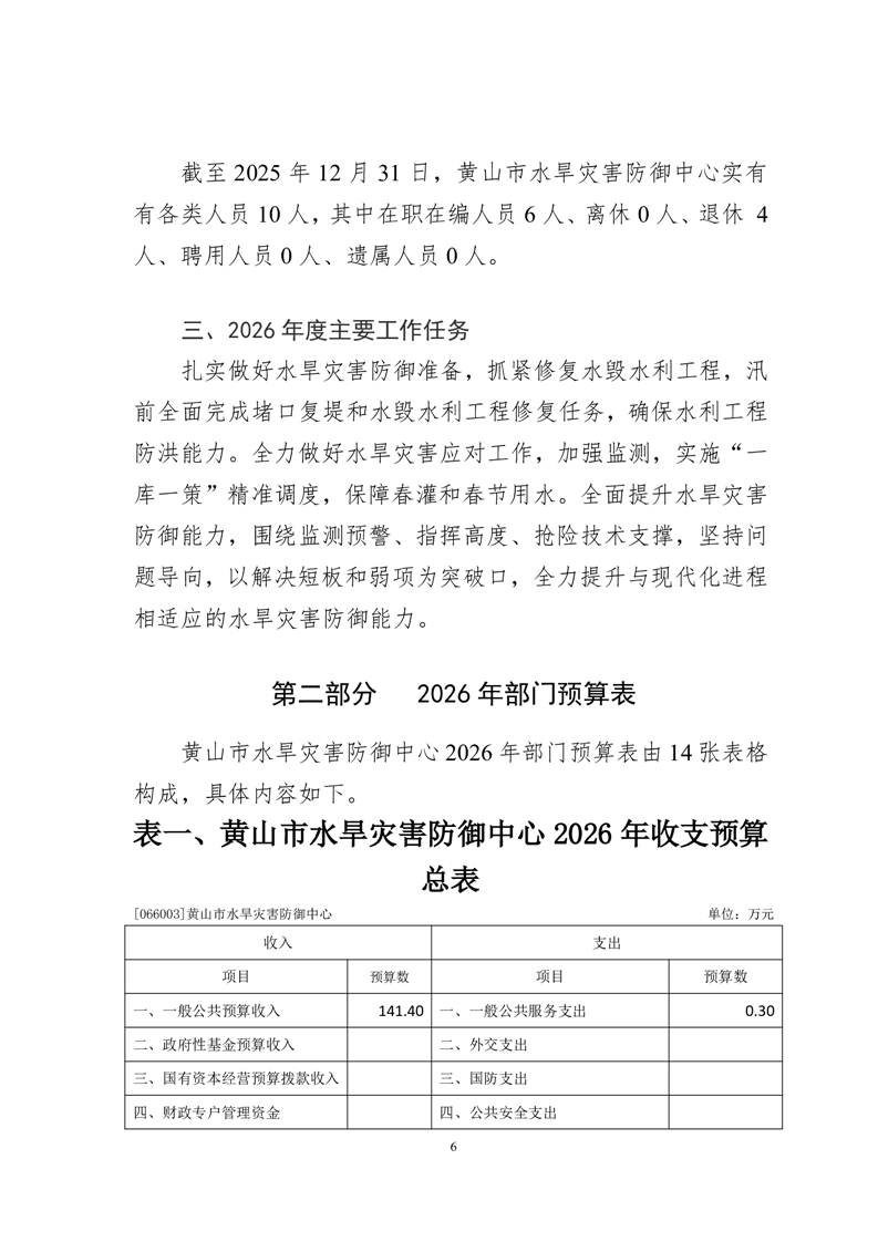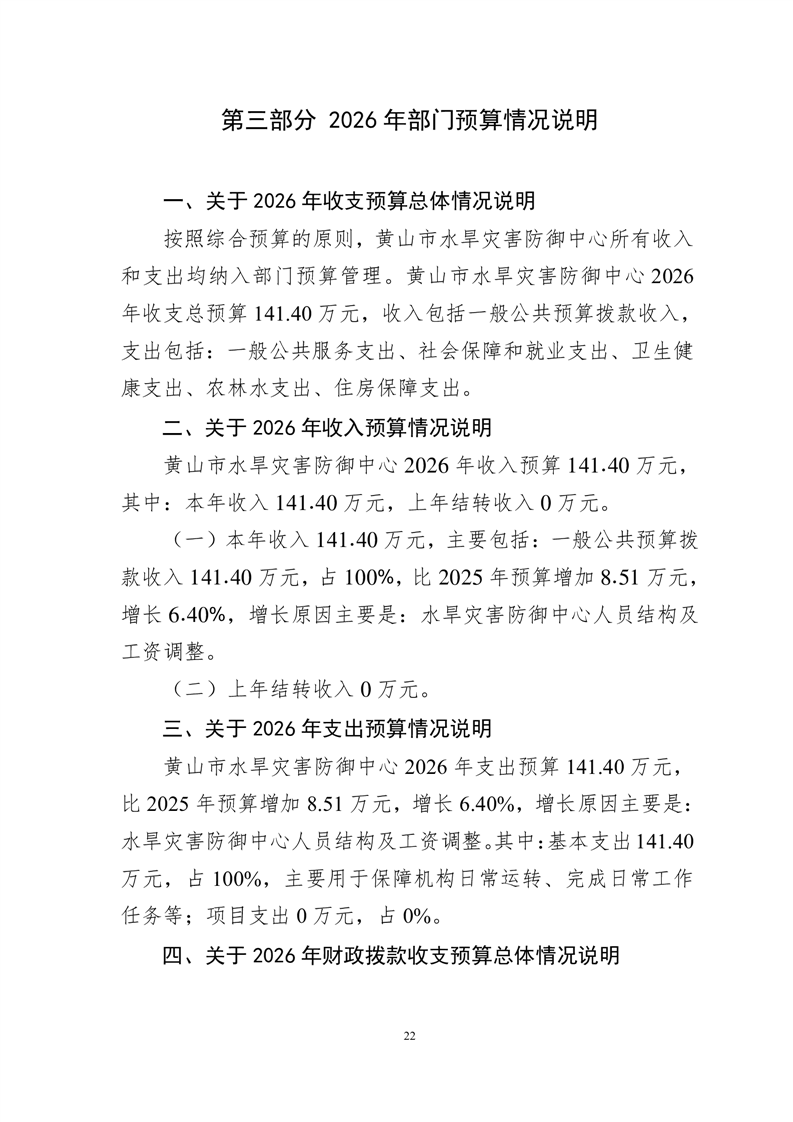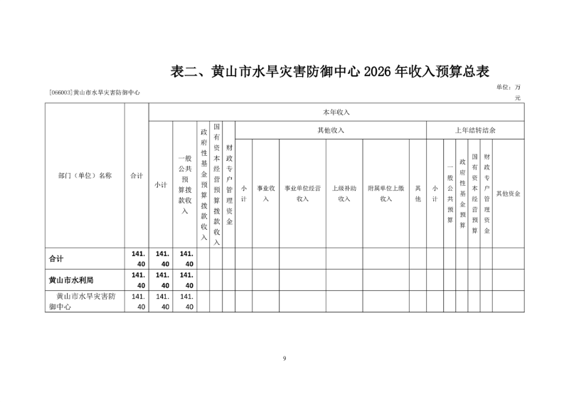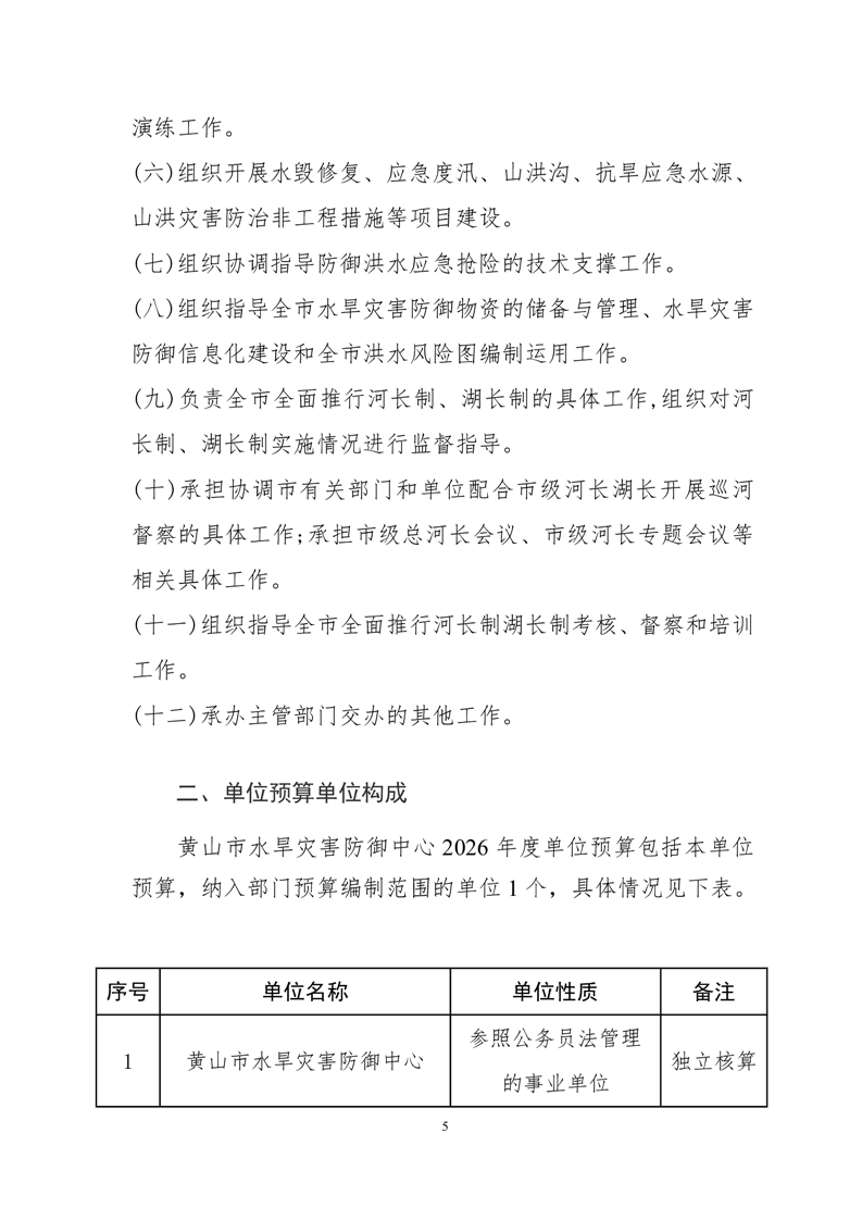 黄山市水旱灾害防御中心2026年单位预算