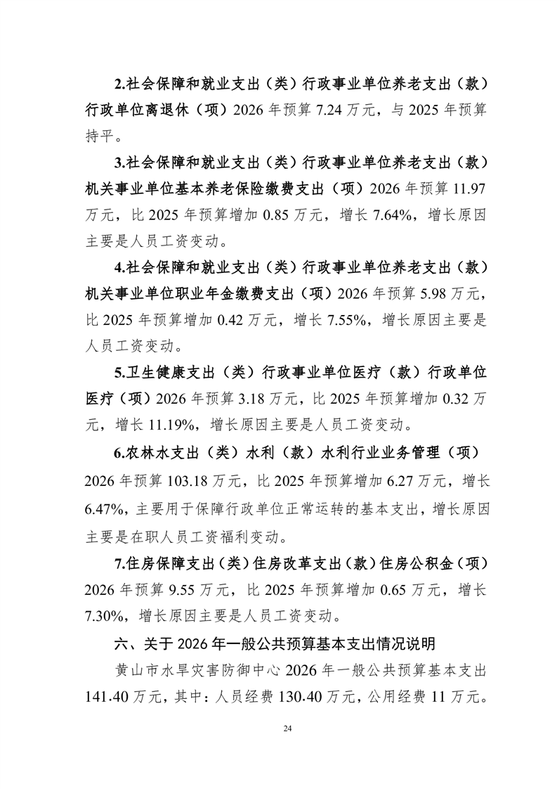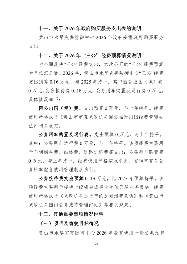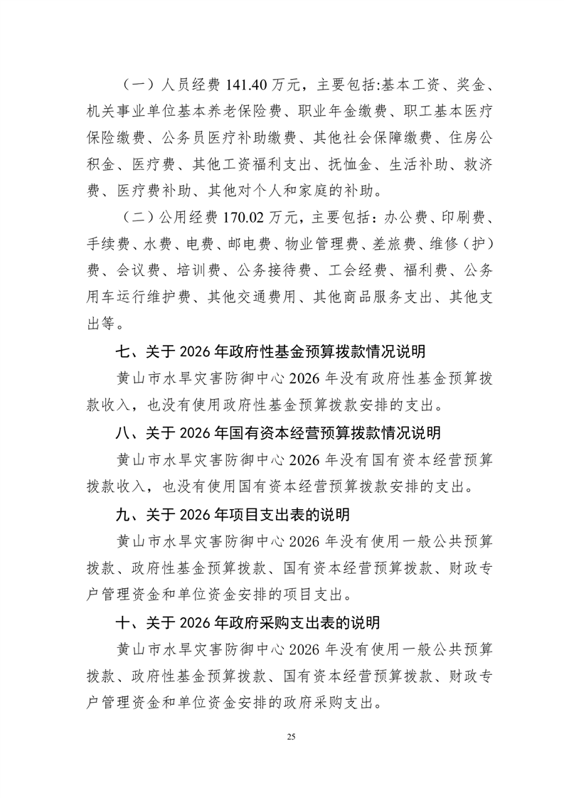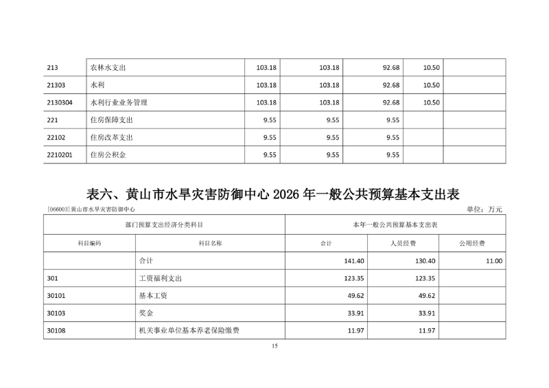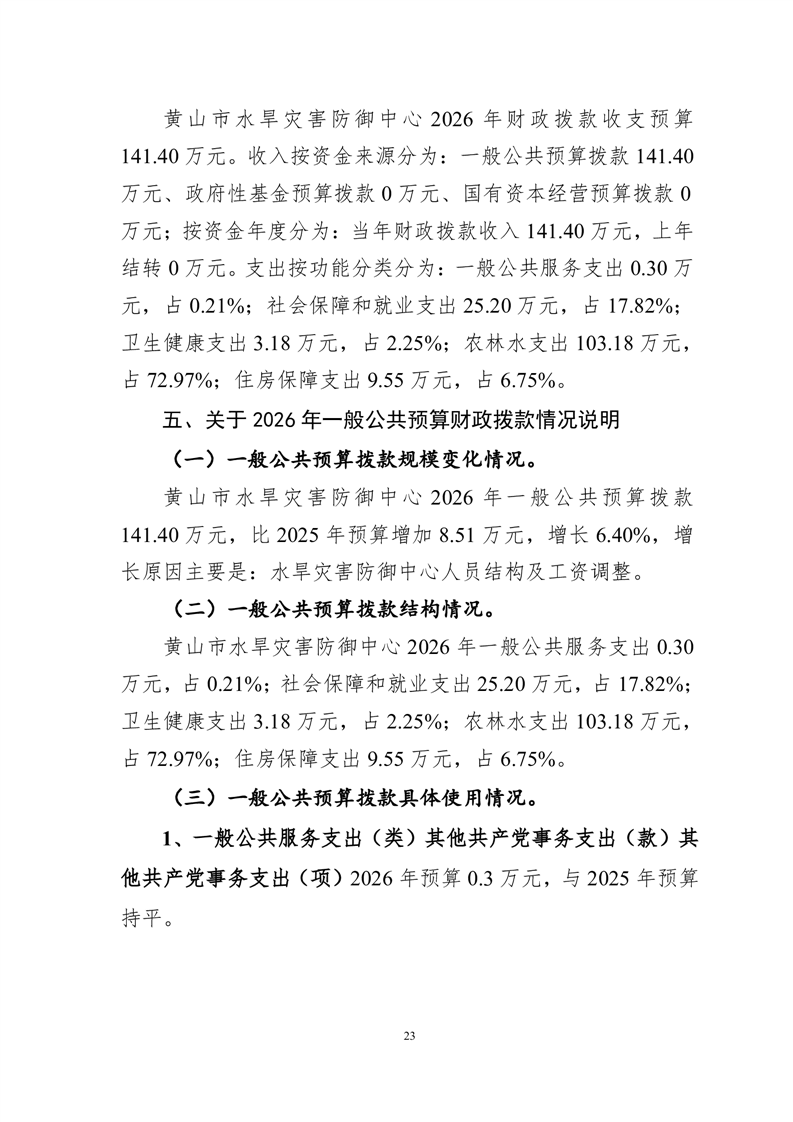 黄山市水旱灾害防御中心2026年单位预算