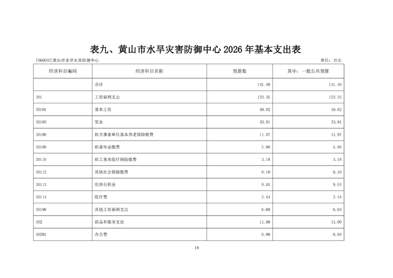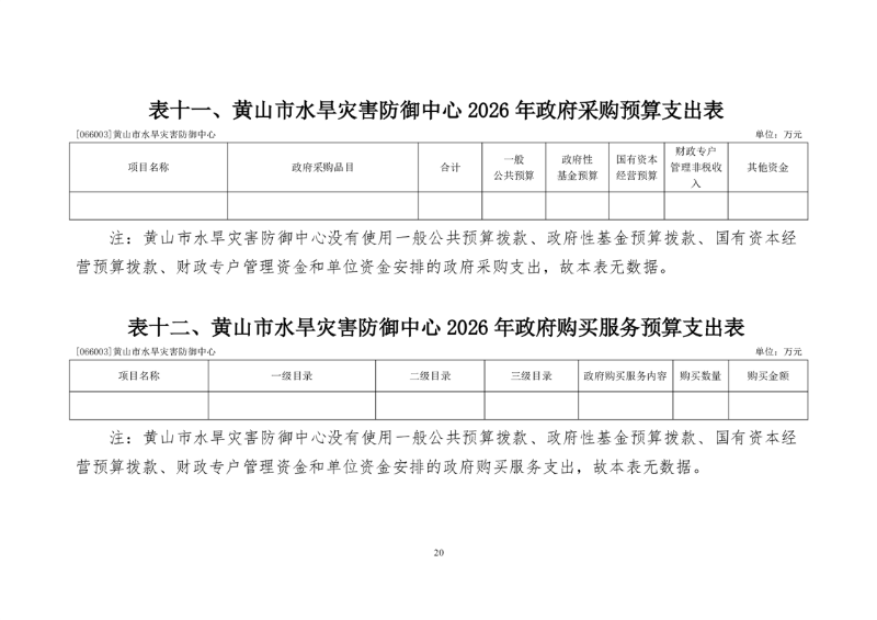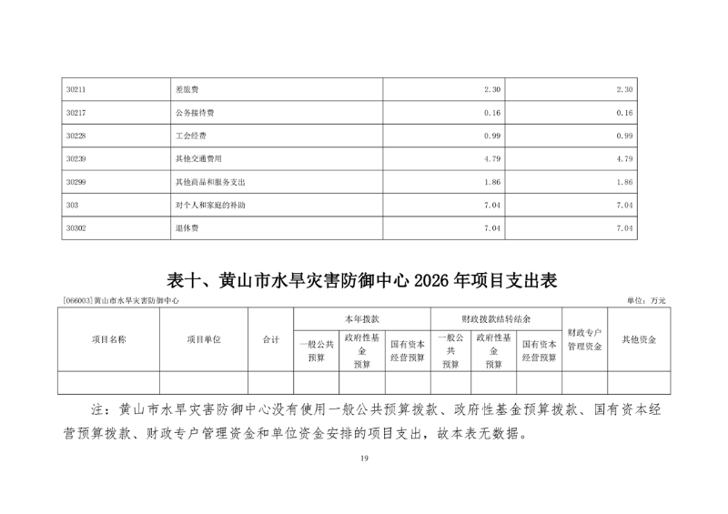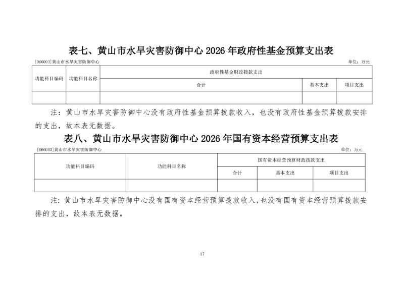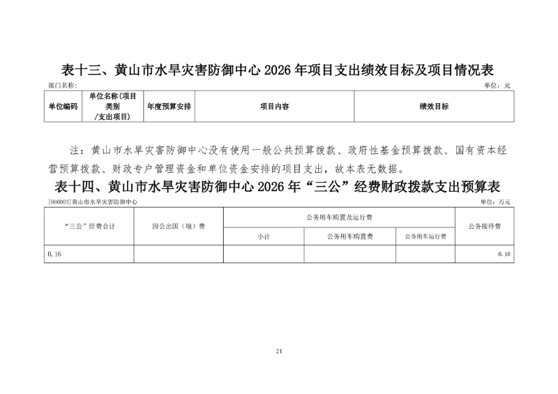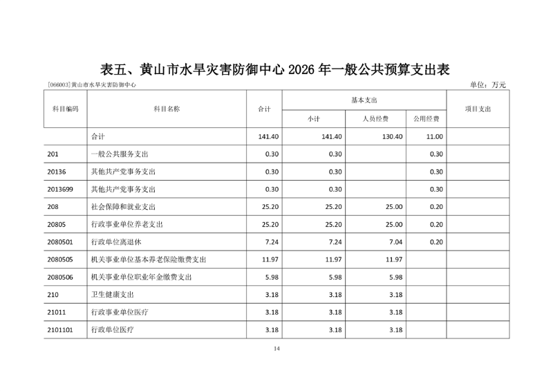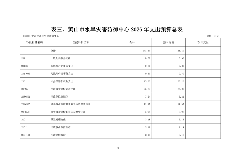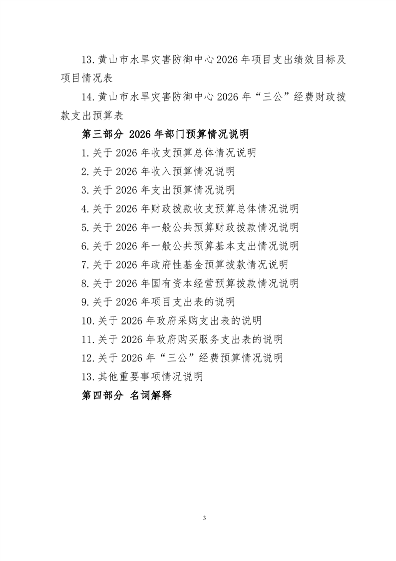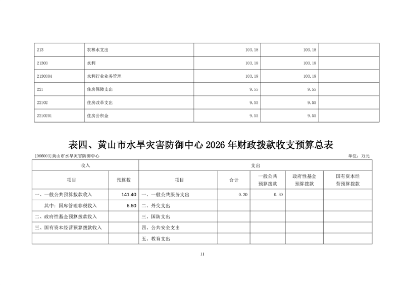 黄山市水旱灾害防御中心2026年单位预算