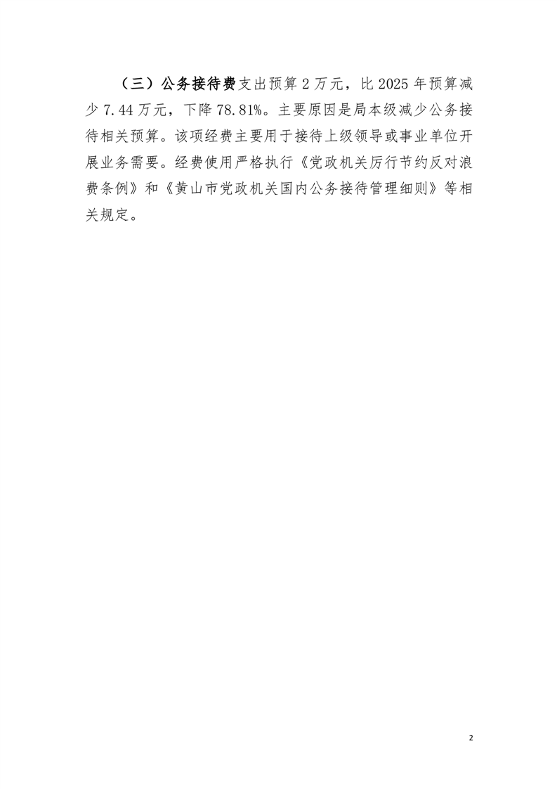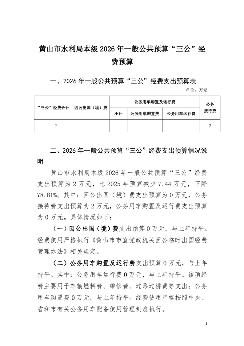 黄山市水利局单位2026年一般公共预算“三公”经费预算